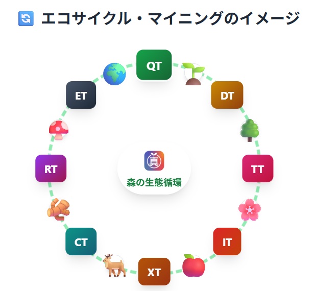 真決DAOは、森の生態系を模した「エコサイクル・マイニング」という独自の仕組みで運営されています。