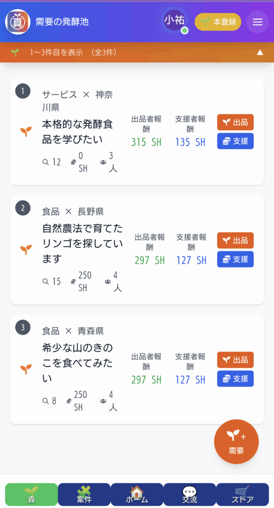 - 新たに出品があった際は、発酵池に投じた人が優先的に購入可能